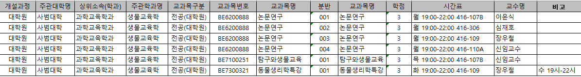 4. 2025학년도 2학기 대학원 과학교육학과 생물교육학전공 개설과목